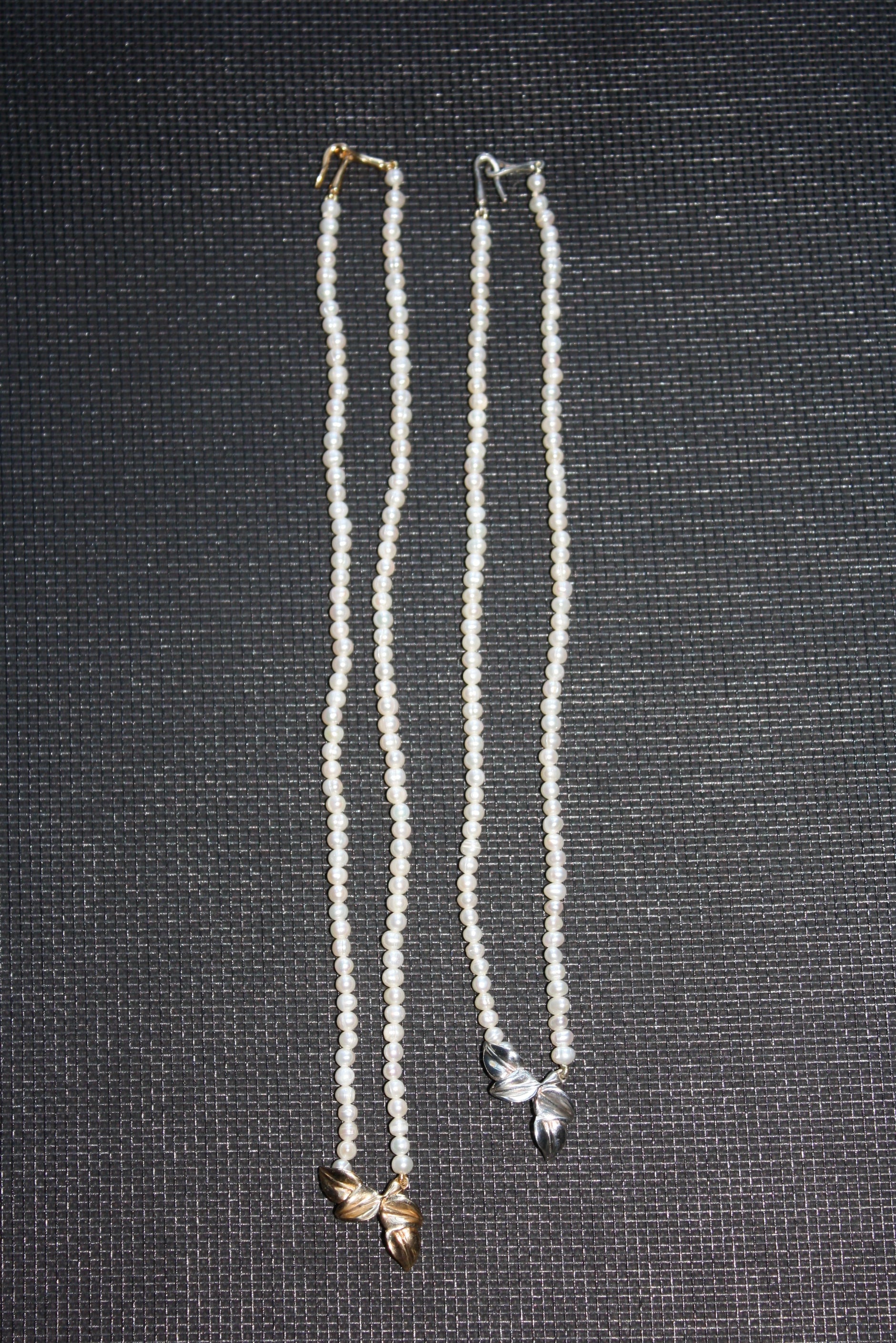 Leaves - The Itty Bitty Four-Leaf Necklace with Fresh Water Cultured Pearls in Sterling Silver